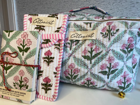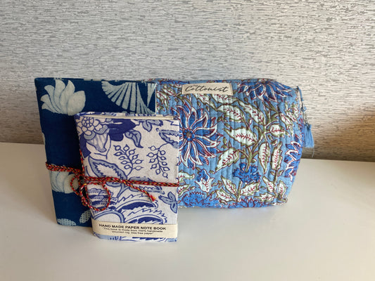 Blue sweetpeas Handblock printed cosmetic bag \ Travel kit