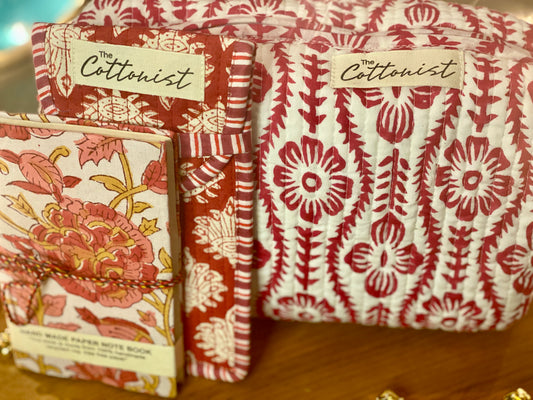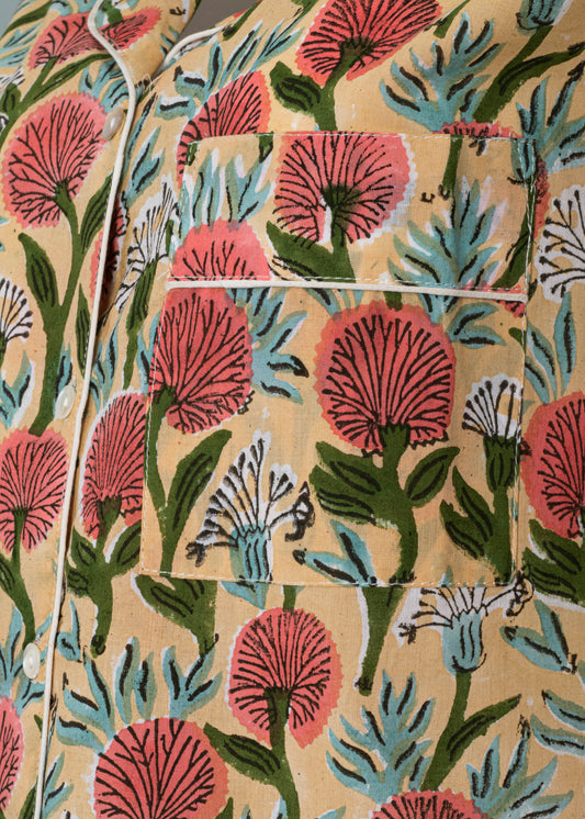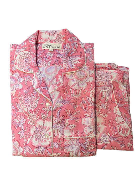 Coral Blooms Block Print Womens Cotton Pajama Set