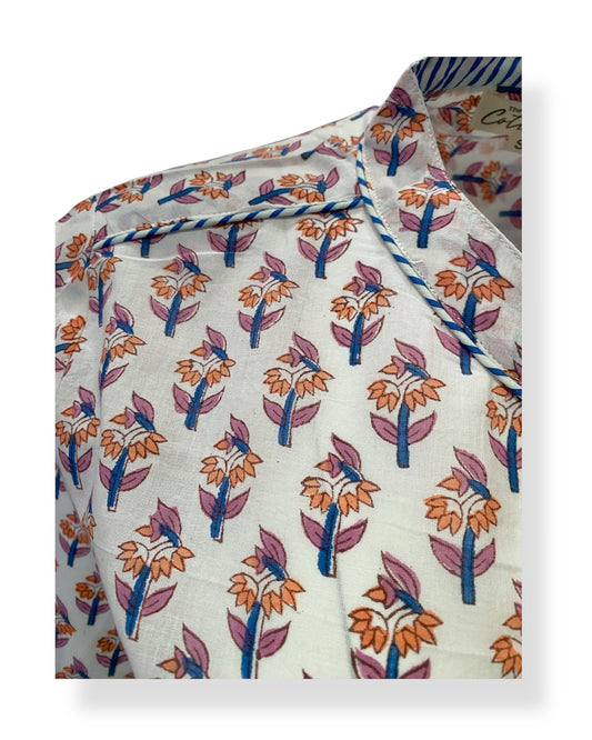 Hand block Print Peach Floral Nightshirt | Floral Sleep Shirt