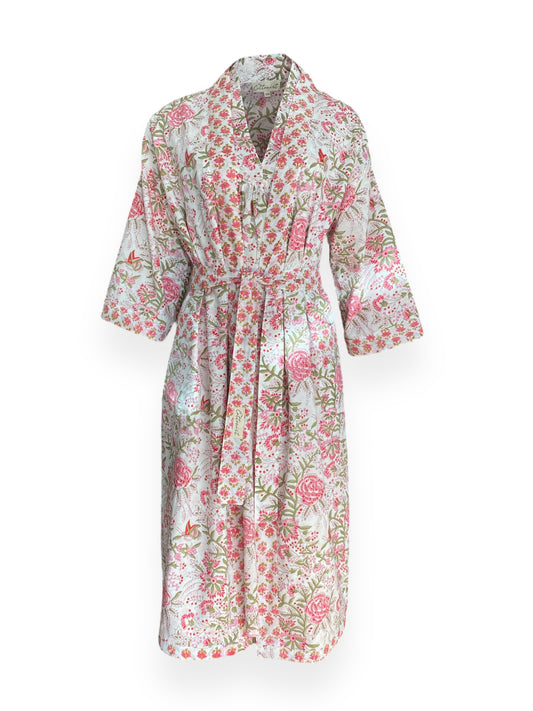 Raspberry Pink Booti jaal Reversible Cotton Robe/Kaftan