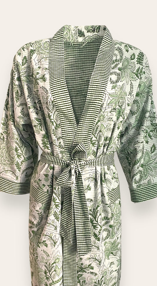 Ice Blue floral Reversible Cotton Robe/Kaftan