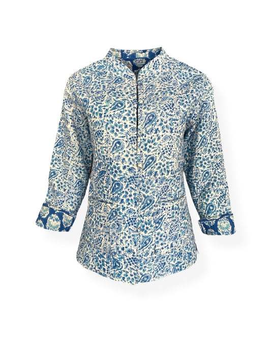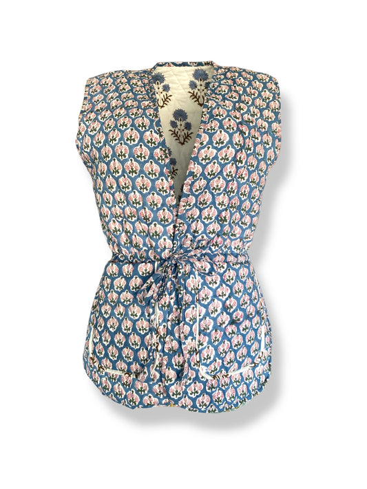Soft Cobalt Bahaar Booti Reversible Quilted Gilet