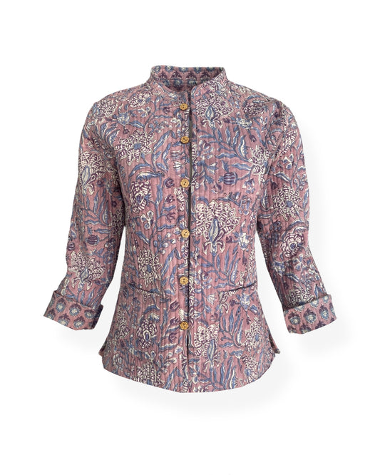 Coral Burst Bahaar Booti Reversible Quilted Gilet