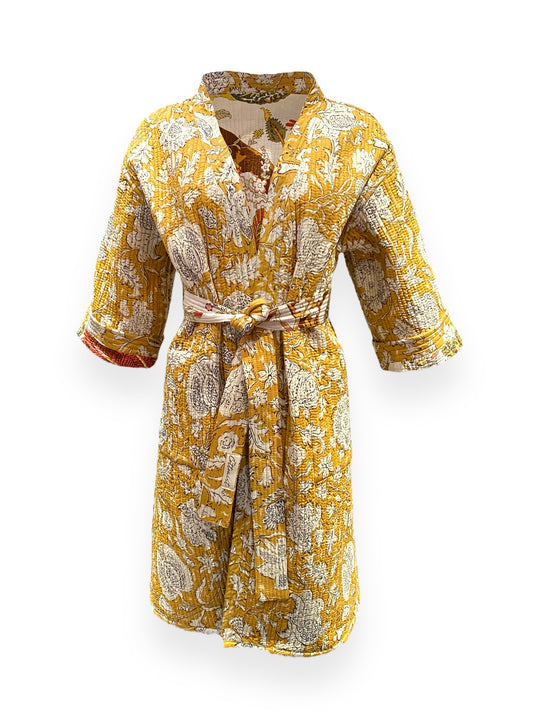 Gulmohar handblock print Reversible Quilted Kimono robe