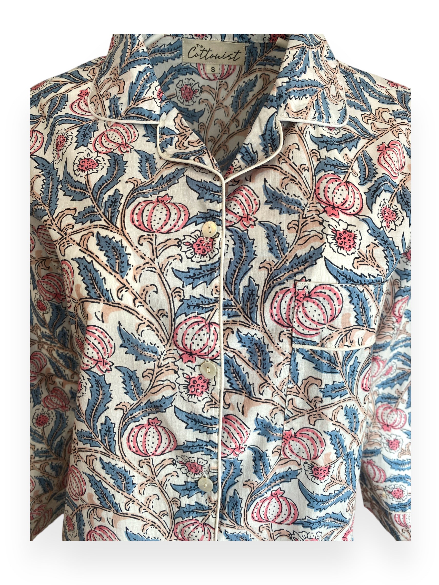Our classic ‘The Cottonist’ pyjama set is made from the softest Indian cotton by using the traditional art of hand block printing making every piece unique in it’s appearance.