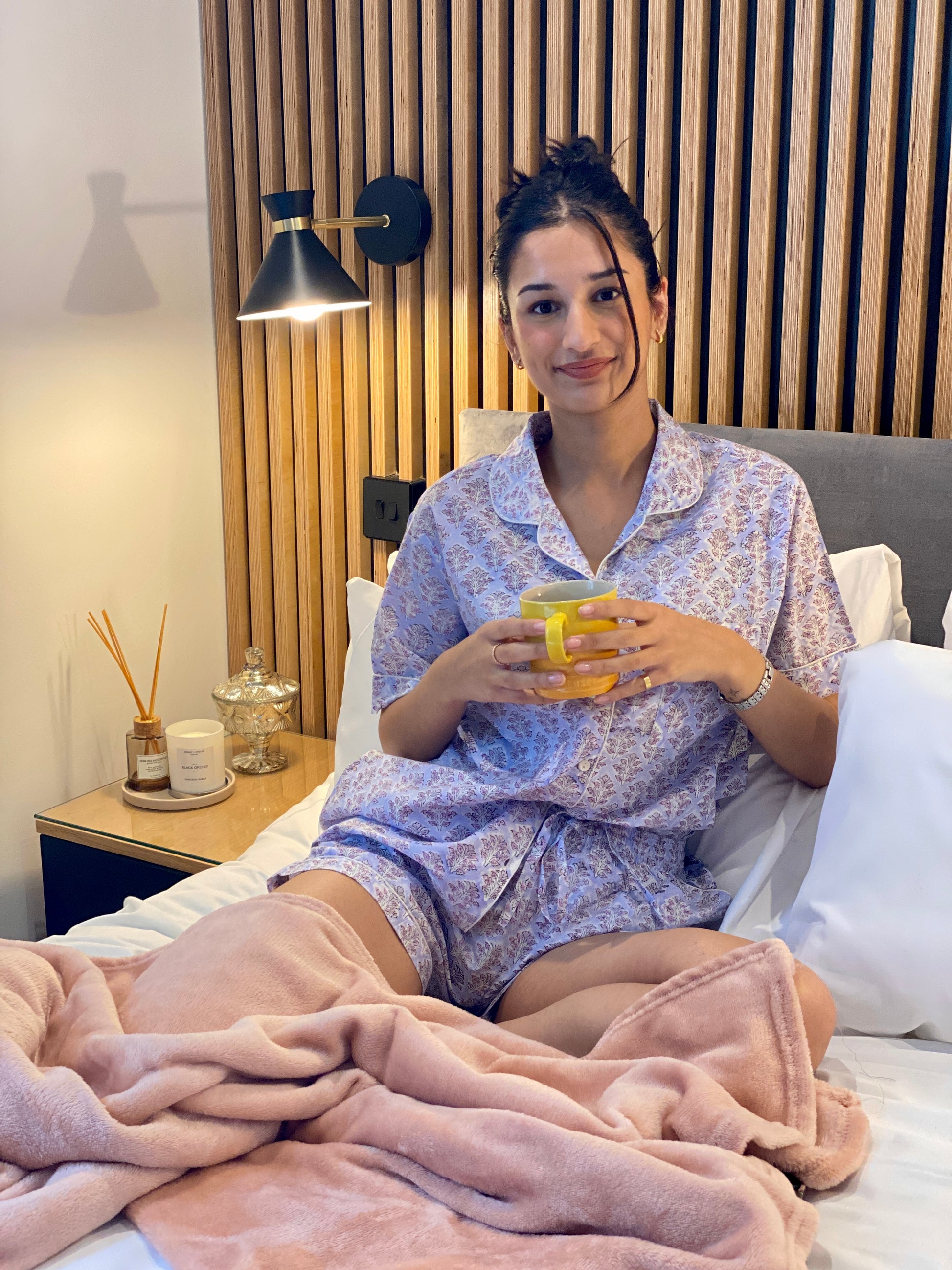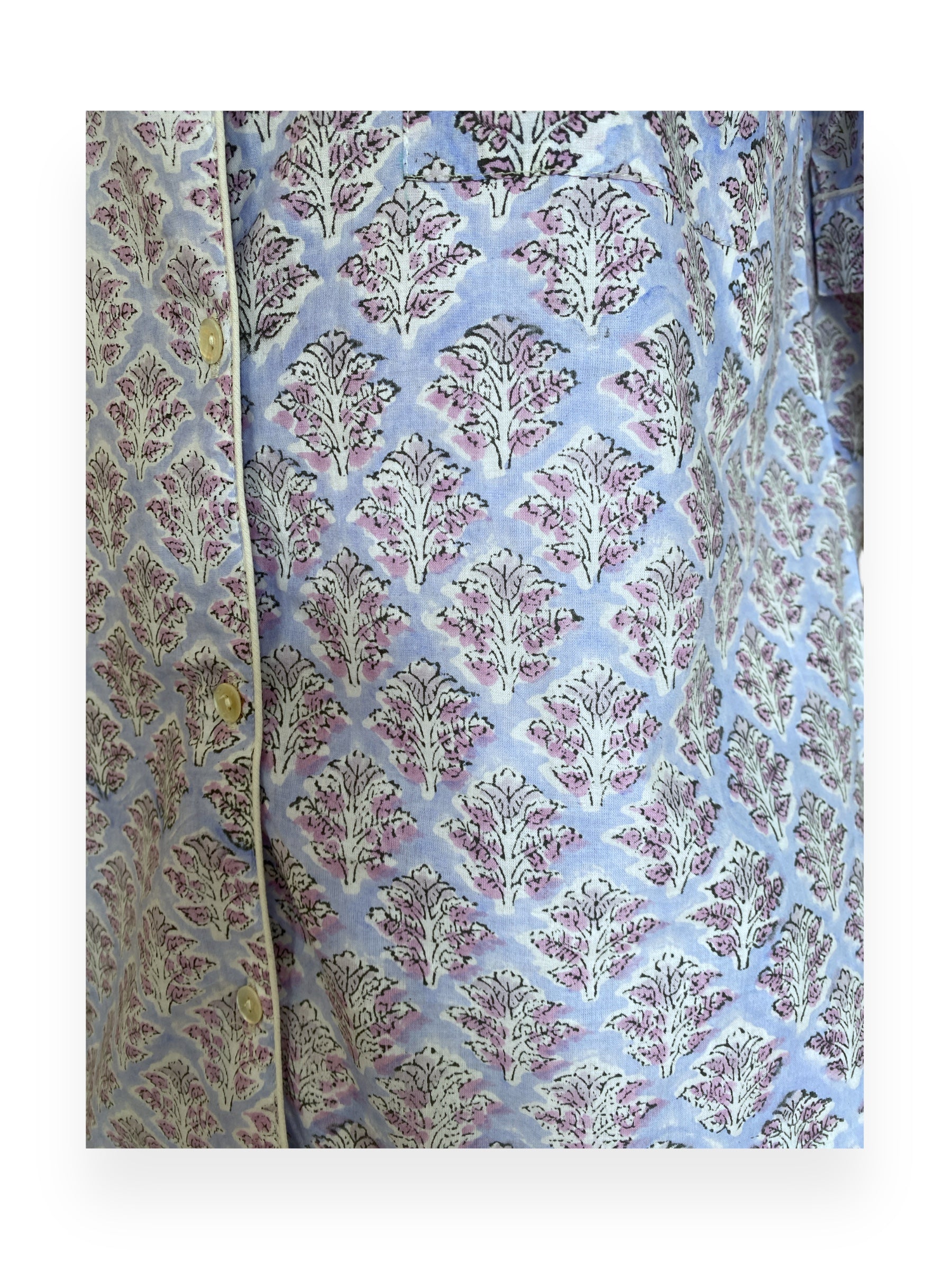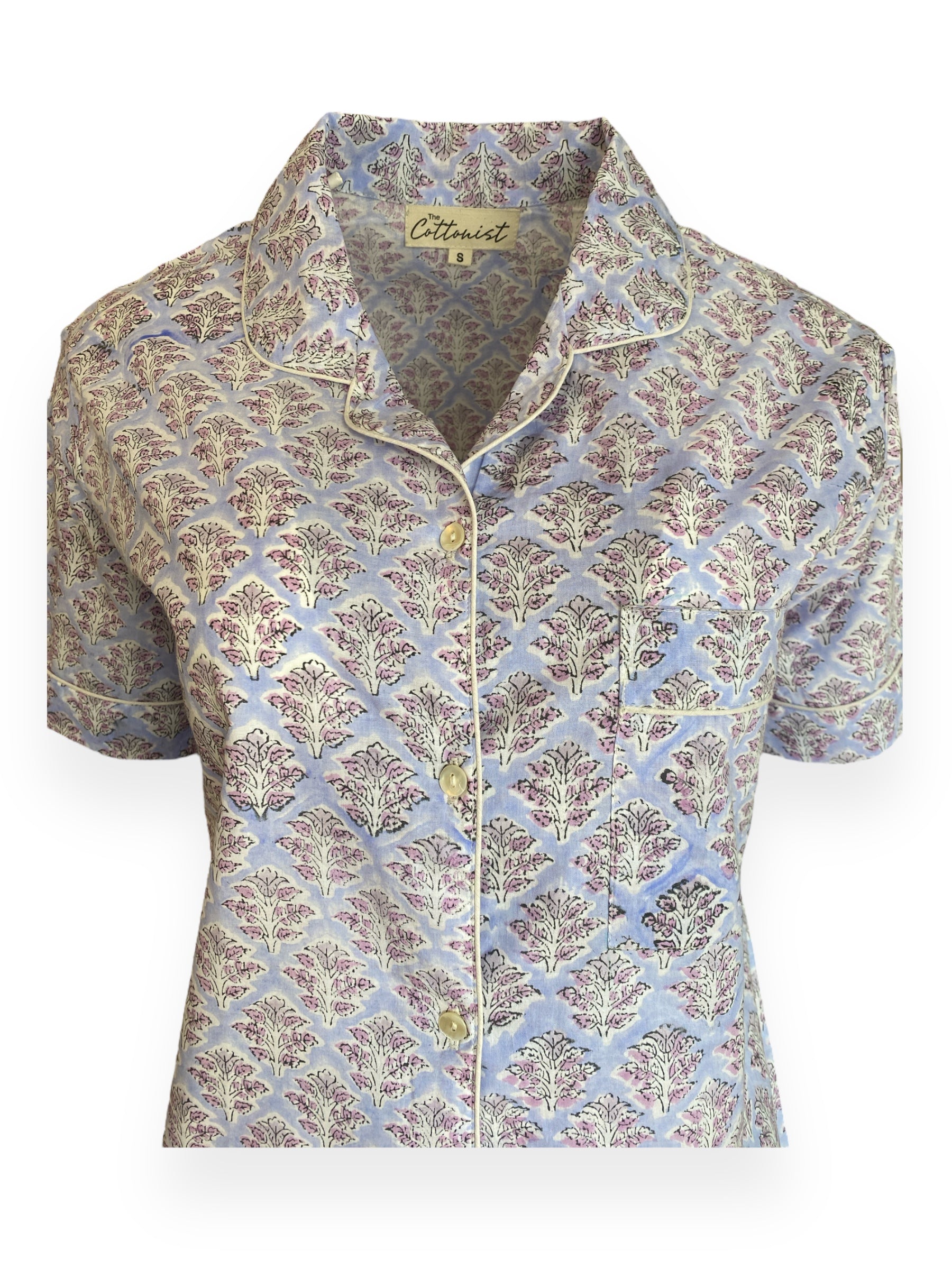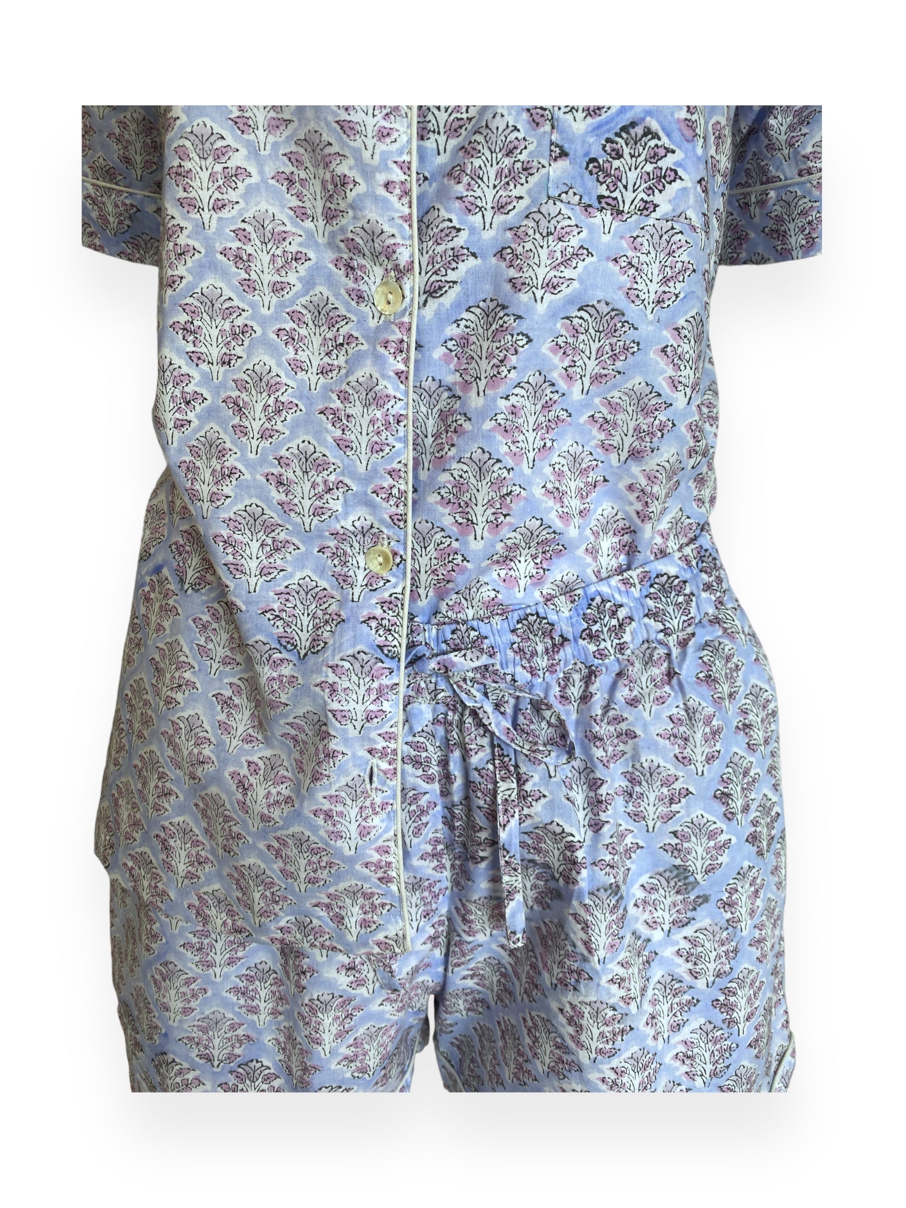 A Classic ‘The Cottonist’ shorts set is made from the softest Indian cotton by using the traditional art of hand block printing making every piece unique in it’s appearance and finished with white piping. The shorts feature a flexible, elasticated waistband, which can be worn high on the waist or low on the hips. The natural fabric is woven, then dyed and crafted into our shorts sets and packed in matching bags, which allow them to be transported using no plastic and can be a perfect gift in this cute bag packing.
