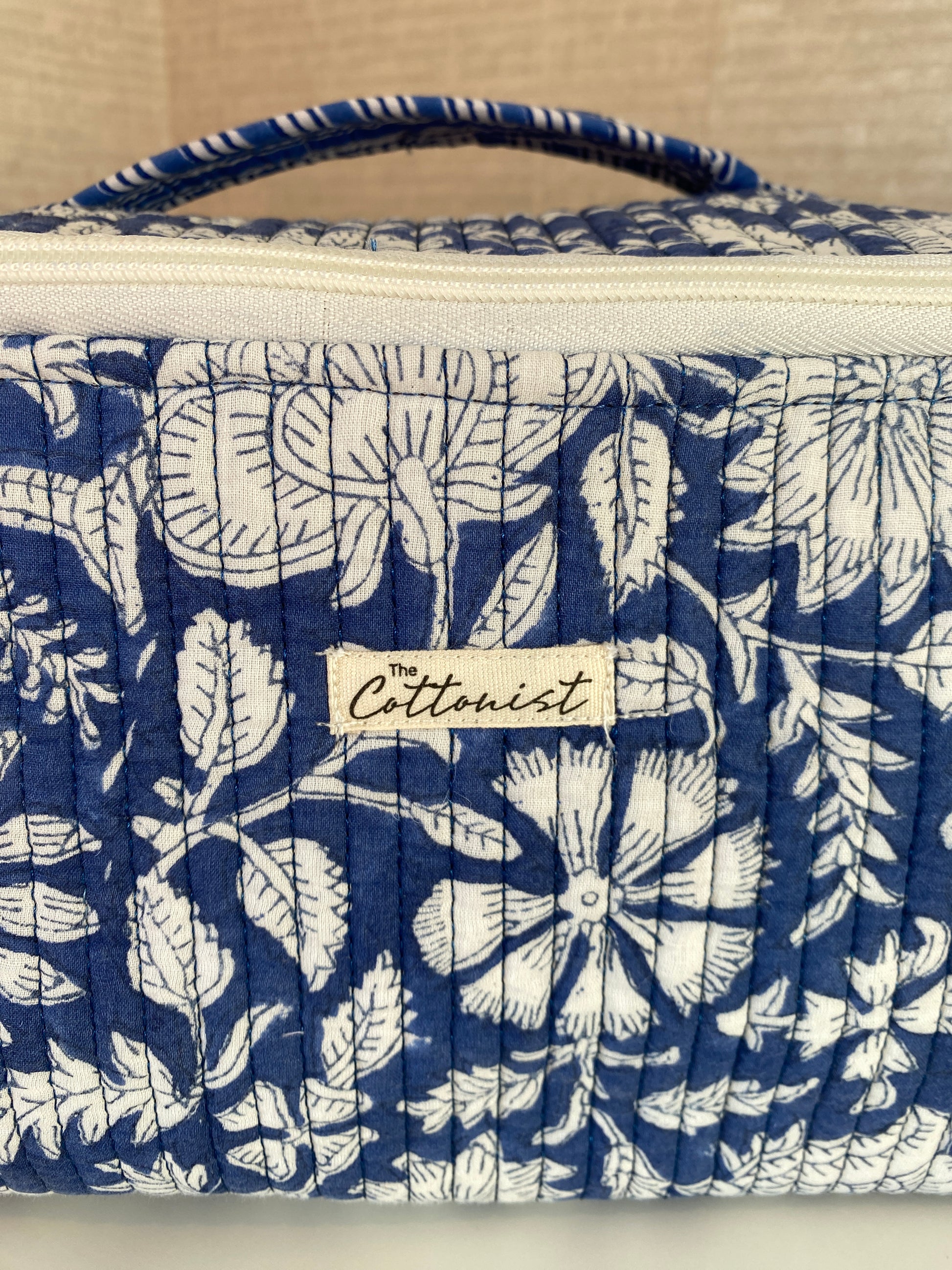 We are delighted to introduce our lovely handblock printed structured cosmetic/travel kits in stunning prints. These cosmetic cases are made of 100% cotton quilted material, finished with a matching zip.