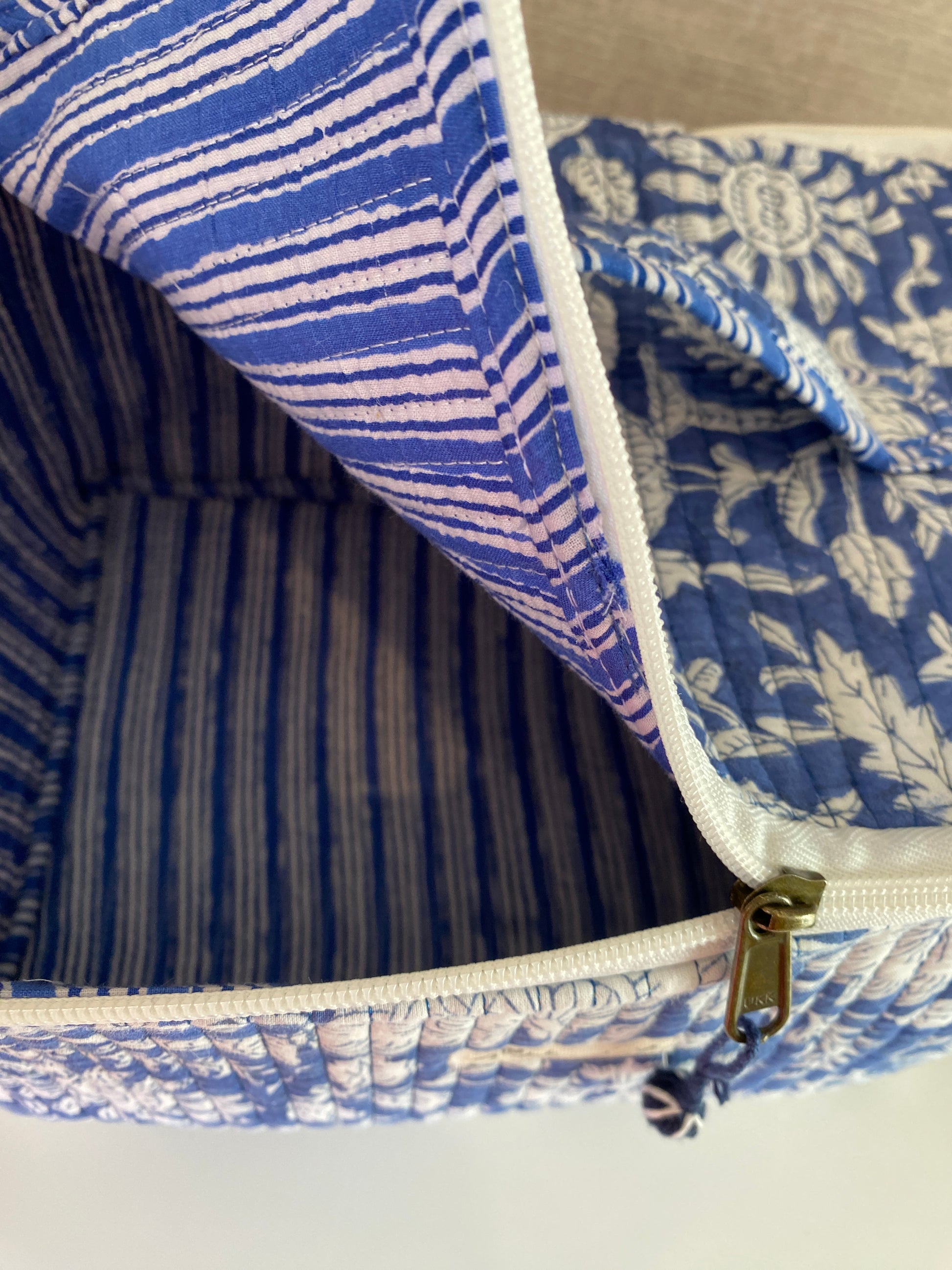 Beautiful Blue Handblock printed structured cosmetic bag / Travel kit