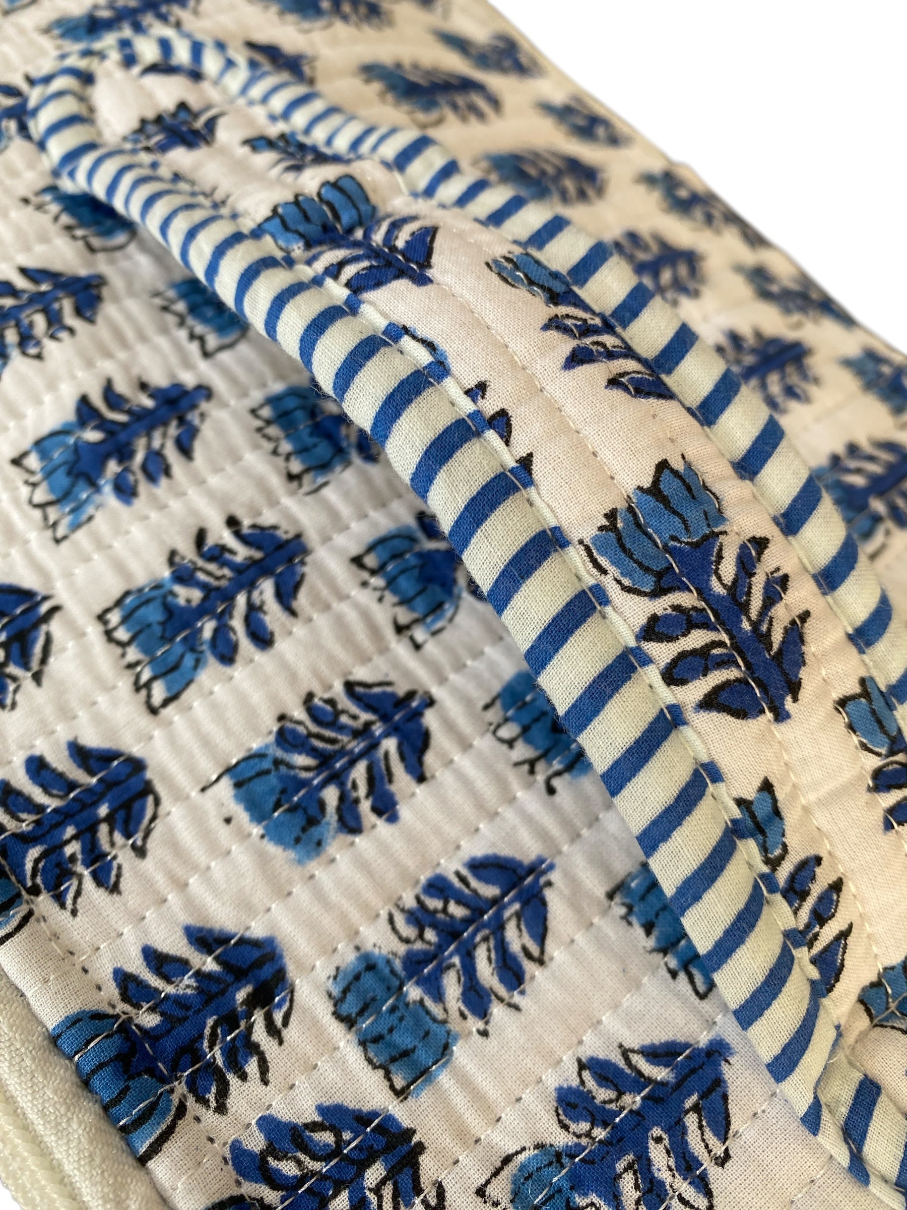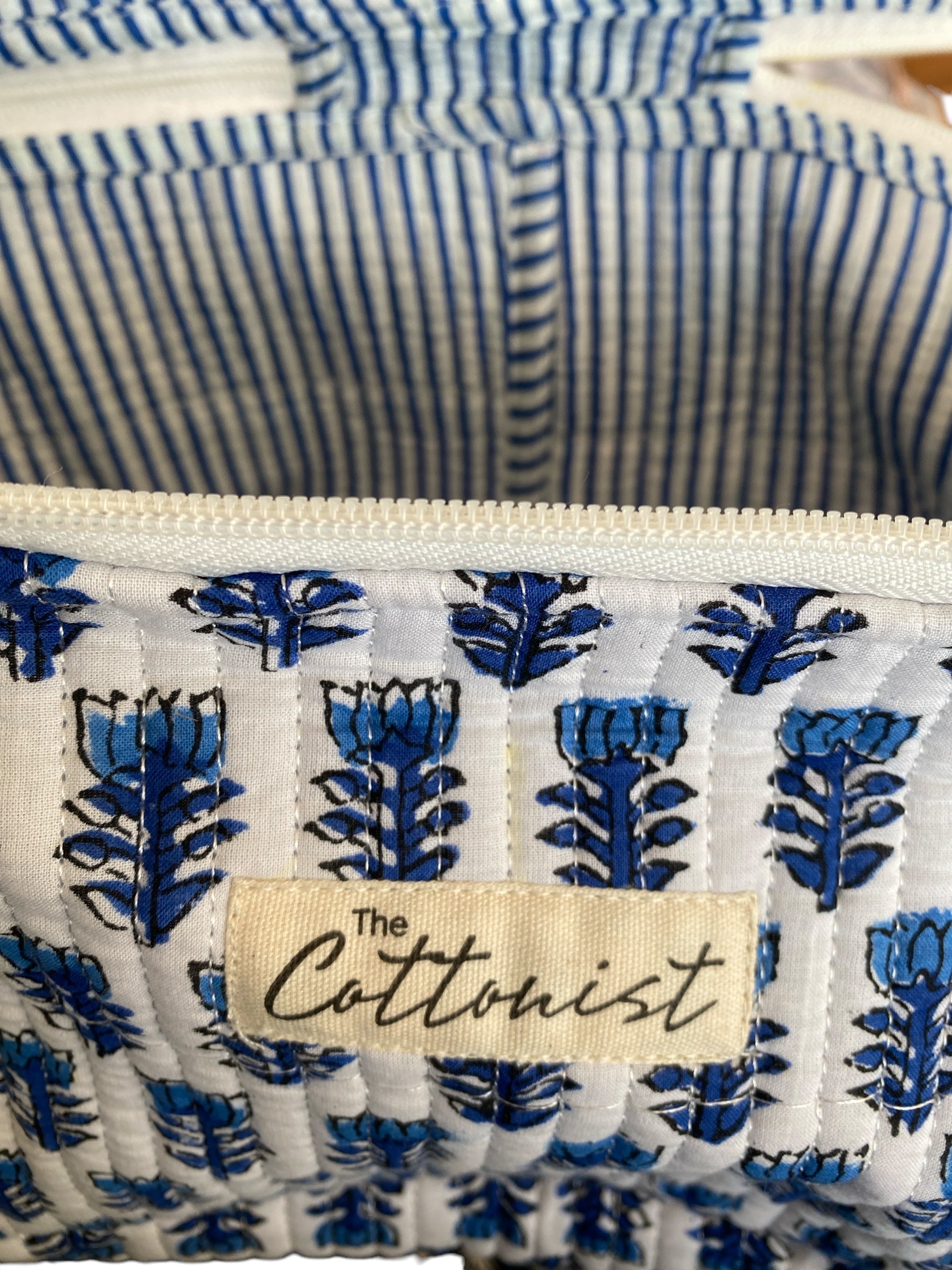 We are delighted to introduce our lovely handblock printed standing cosmetic/travel bags in stunning prints. These cosmetic cases are made of 100% cotton quilted material, finished with a matching zip.