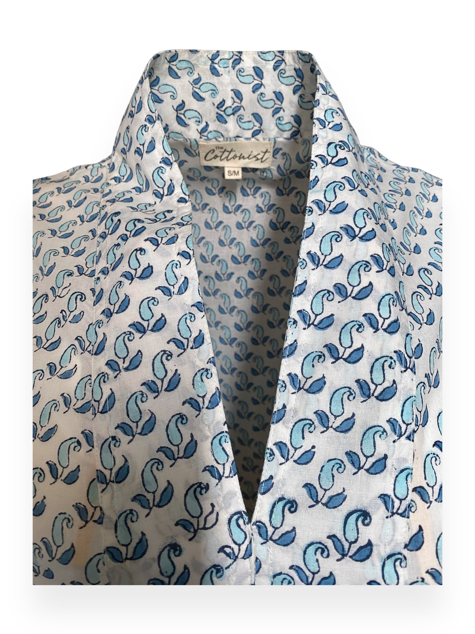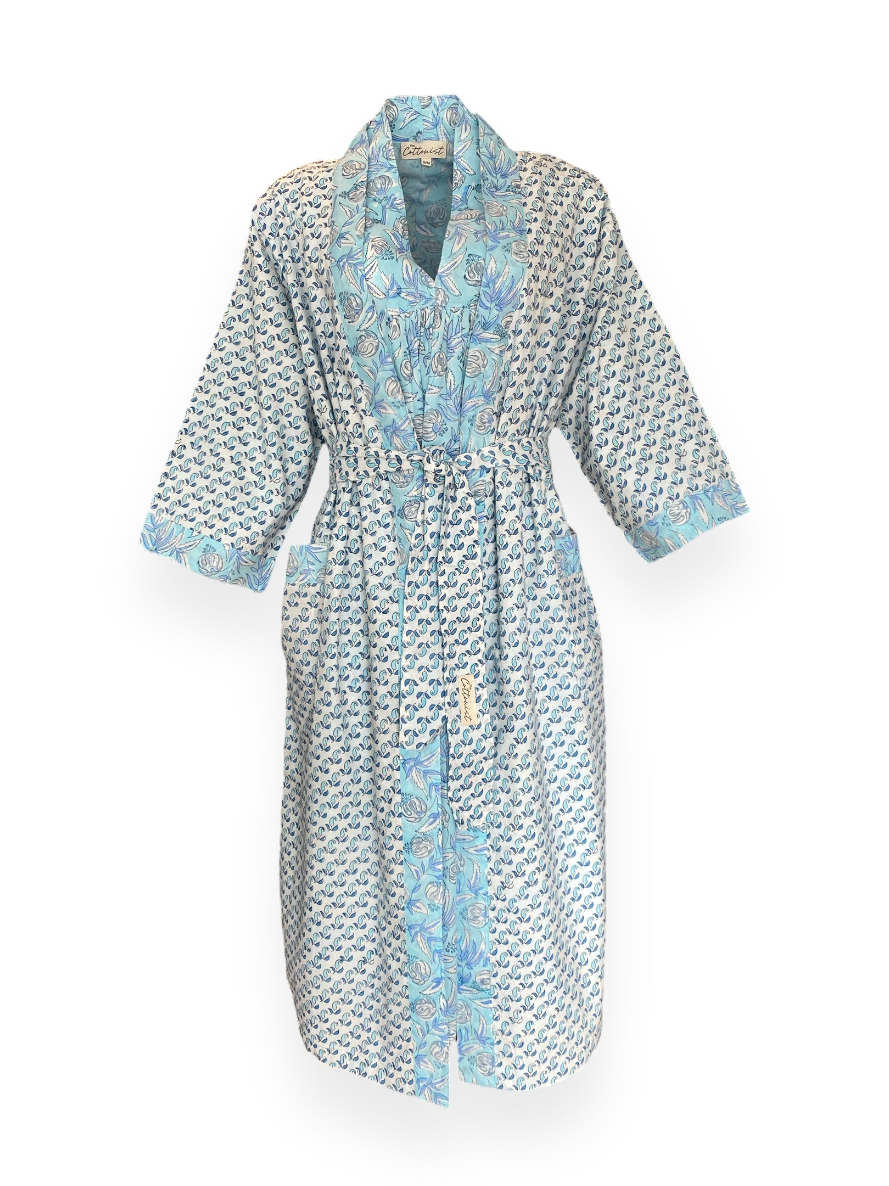 Best worn with our matching robe - Ice Blue Floral Reversible cotton robe.