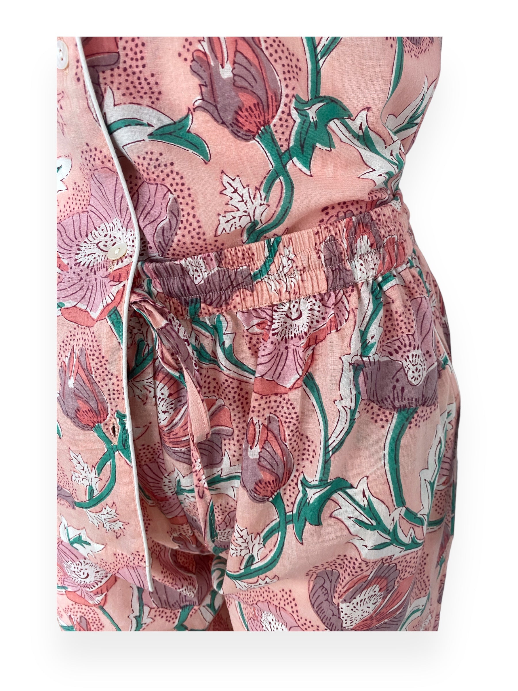 Our classic ‘The Cottonist’ pyjama set is made from the softest Indian cotton by using the traditional art of hand block printing making every piece unique in it’s appearance.
