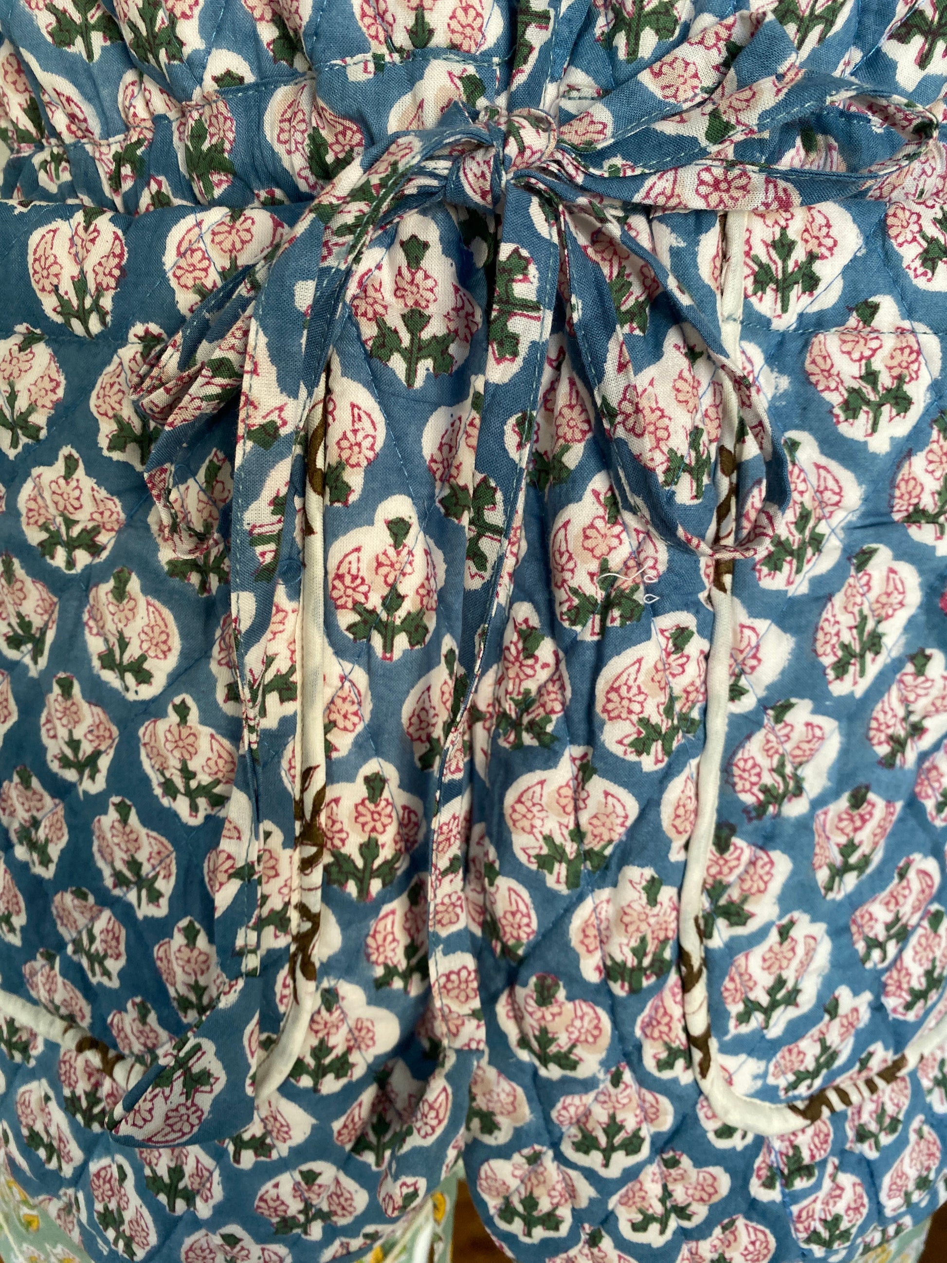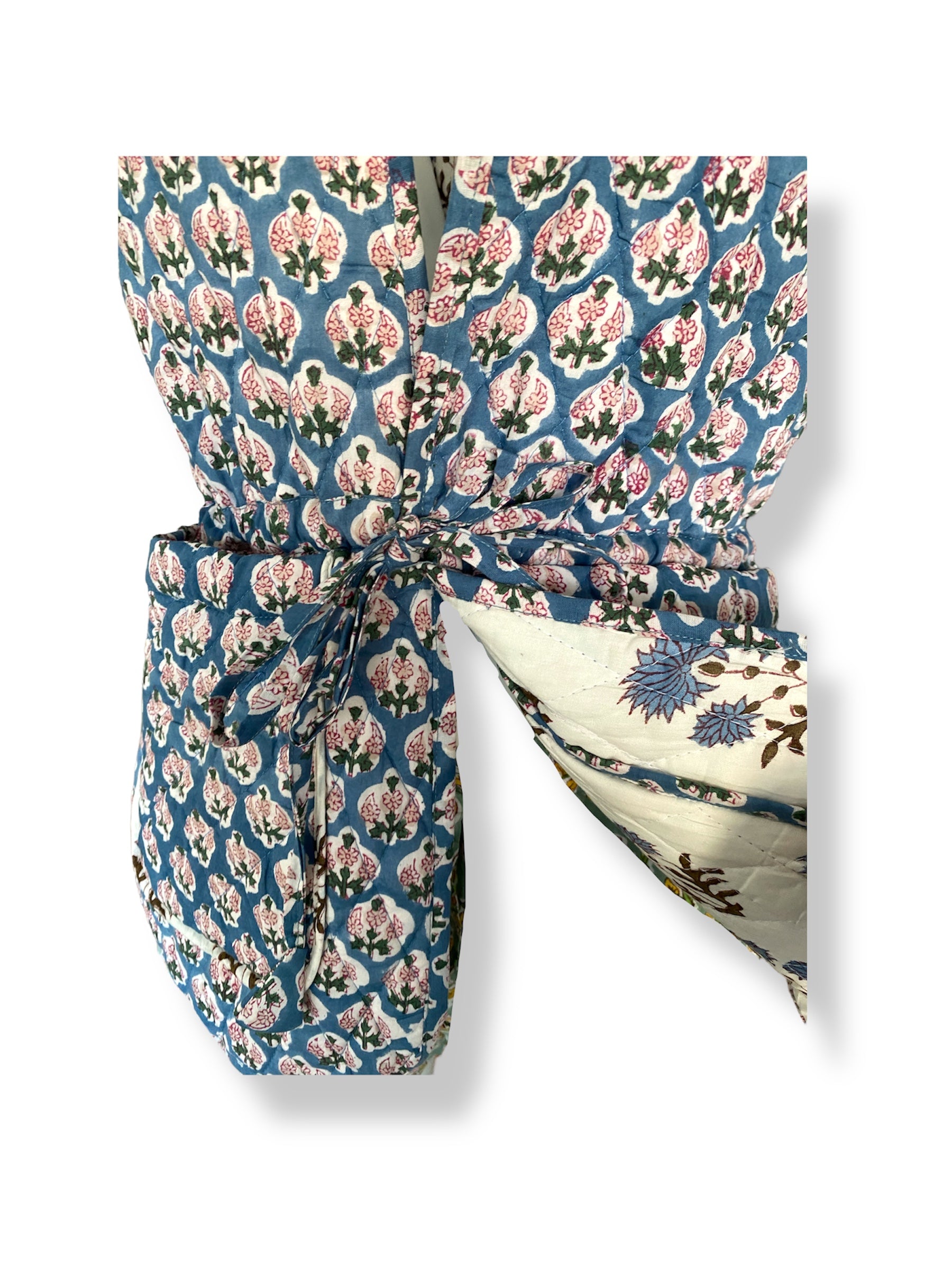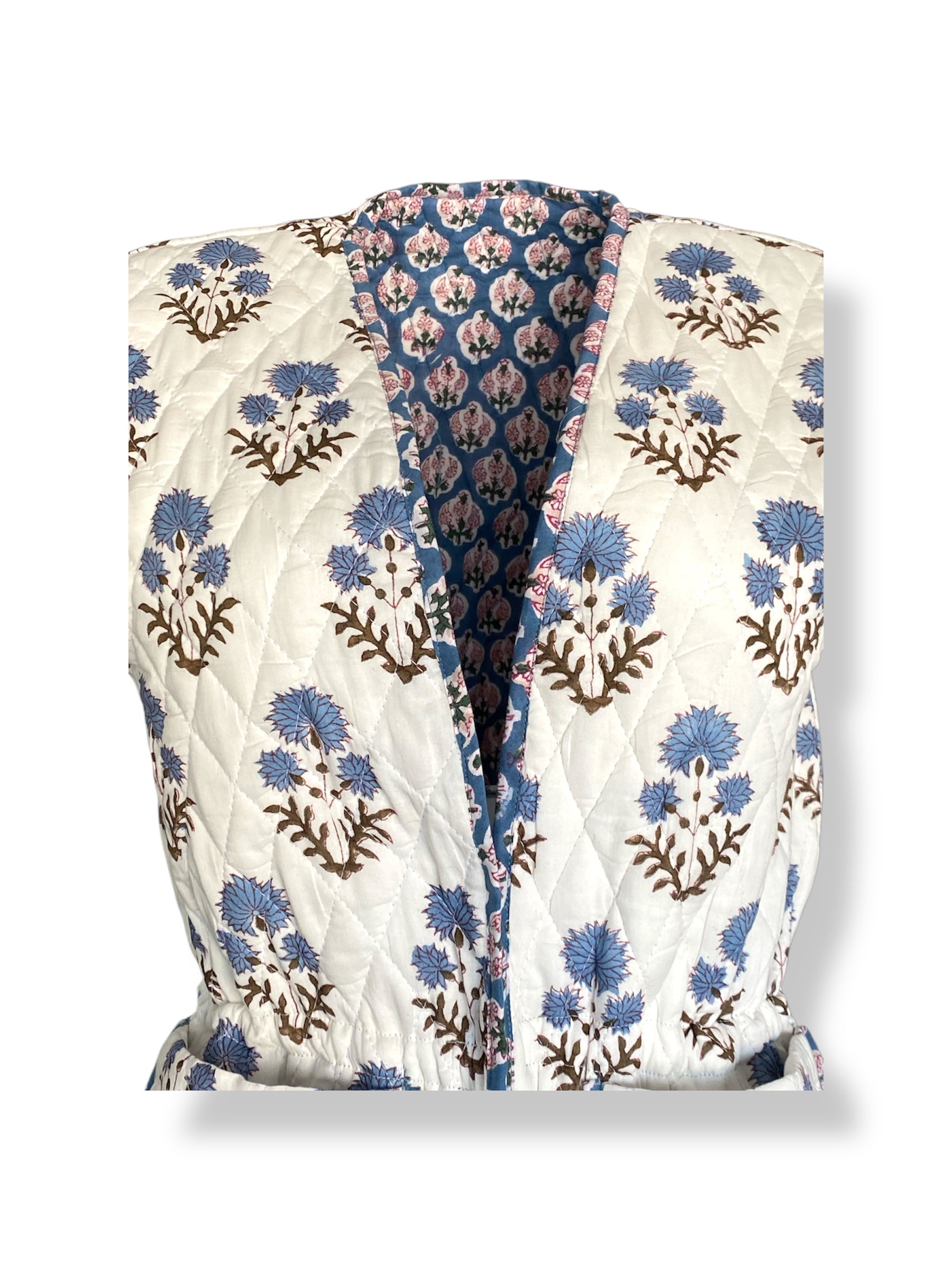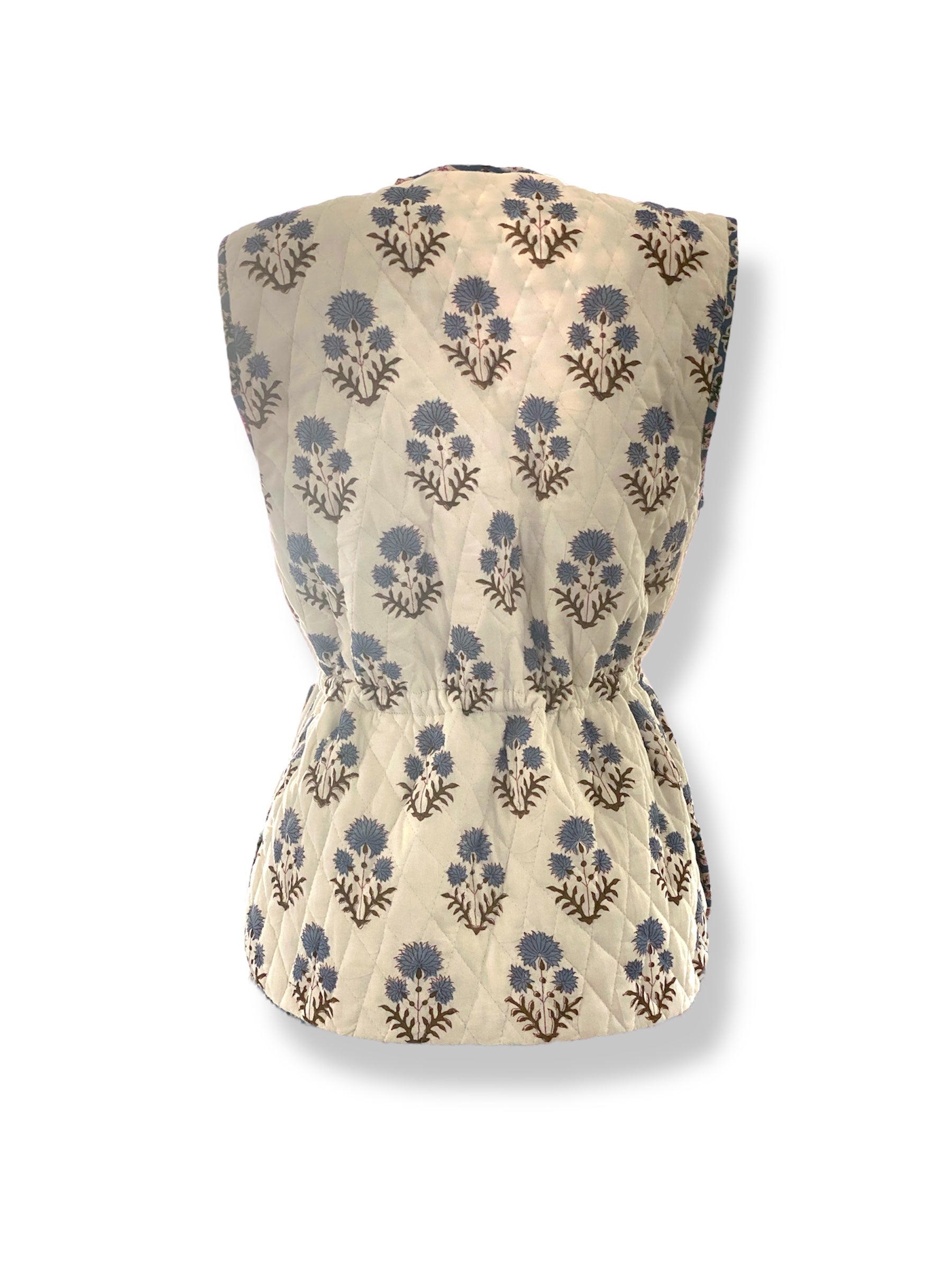 Soft Cobalt Bahaar Booti Reversible Quilted Gilet