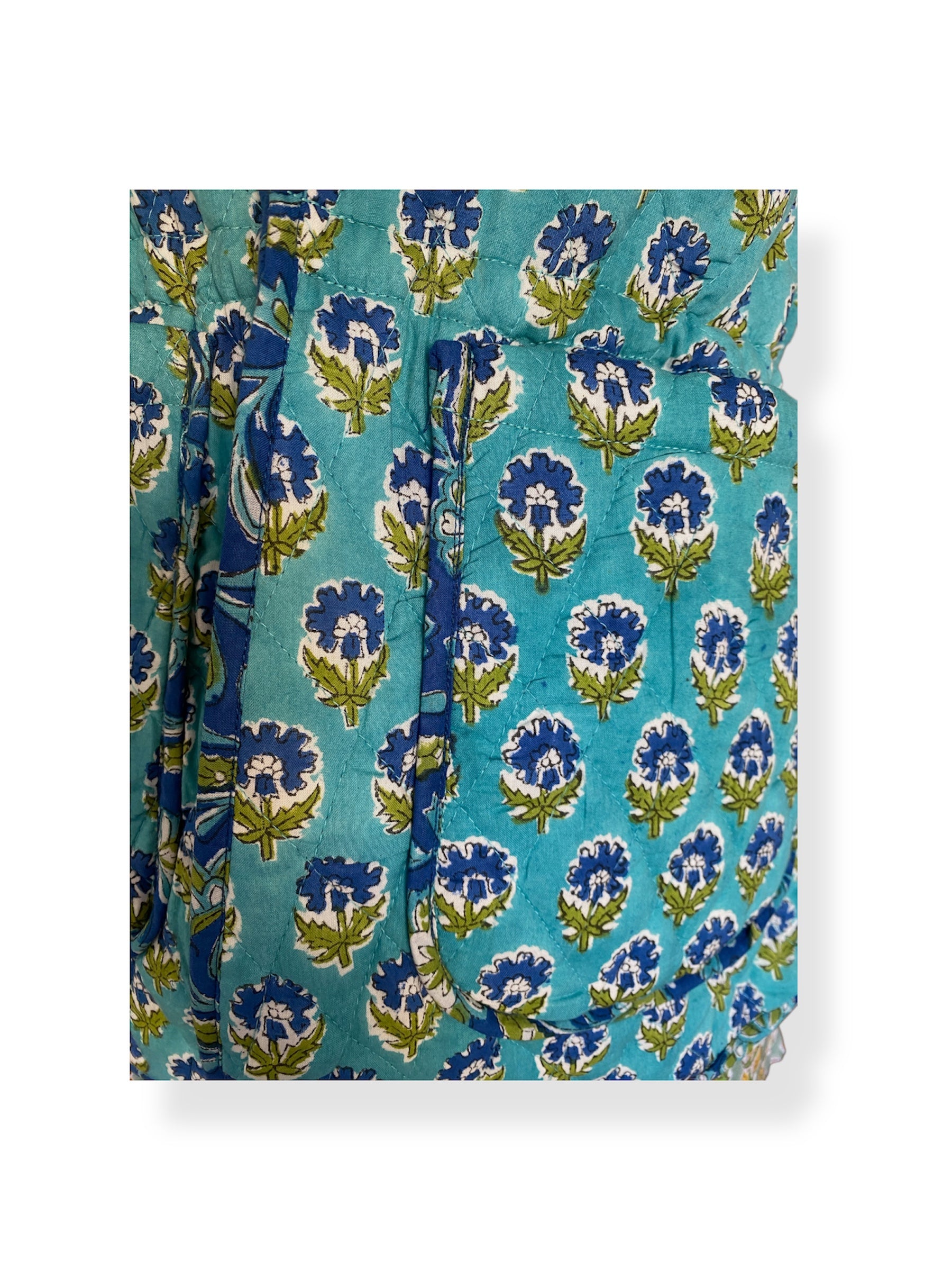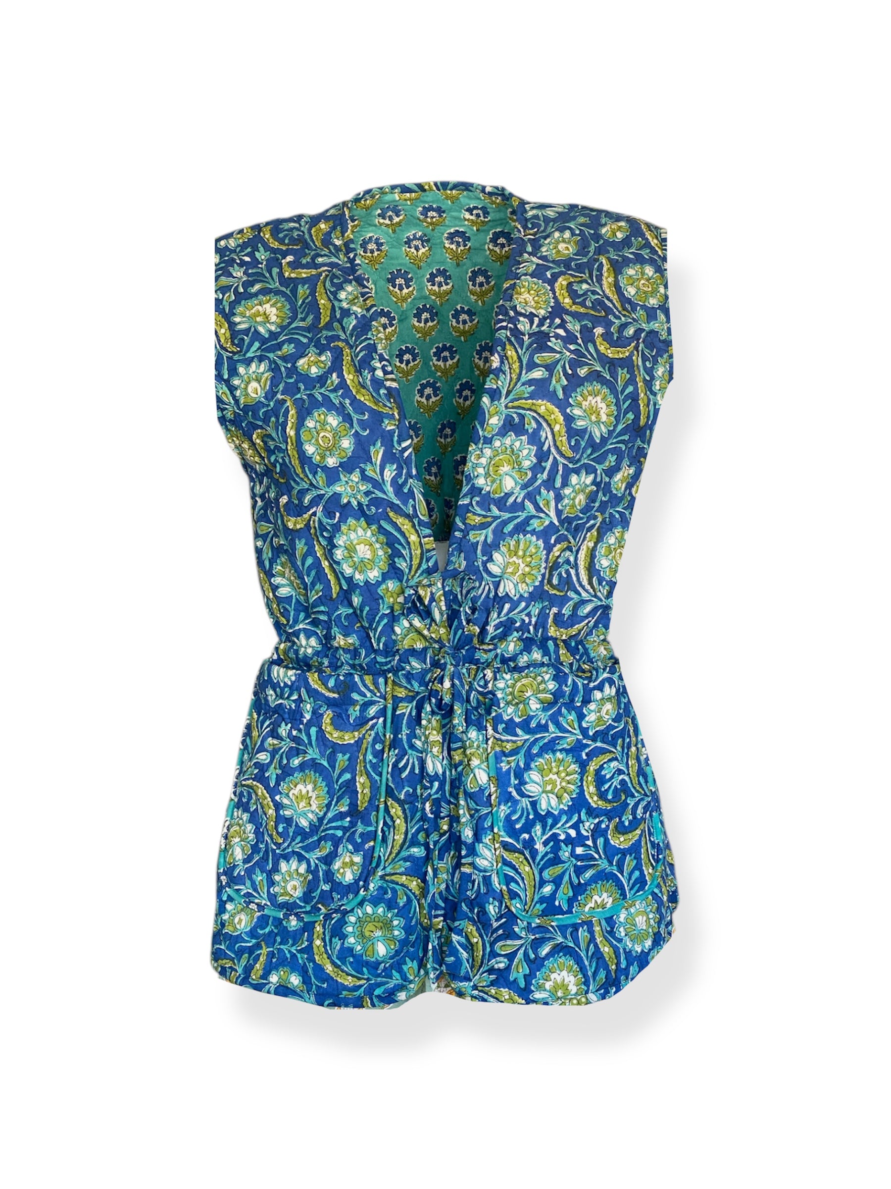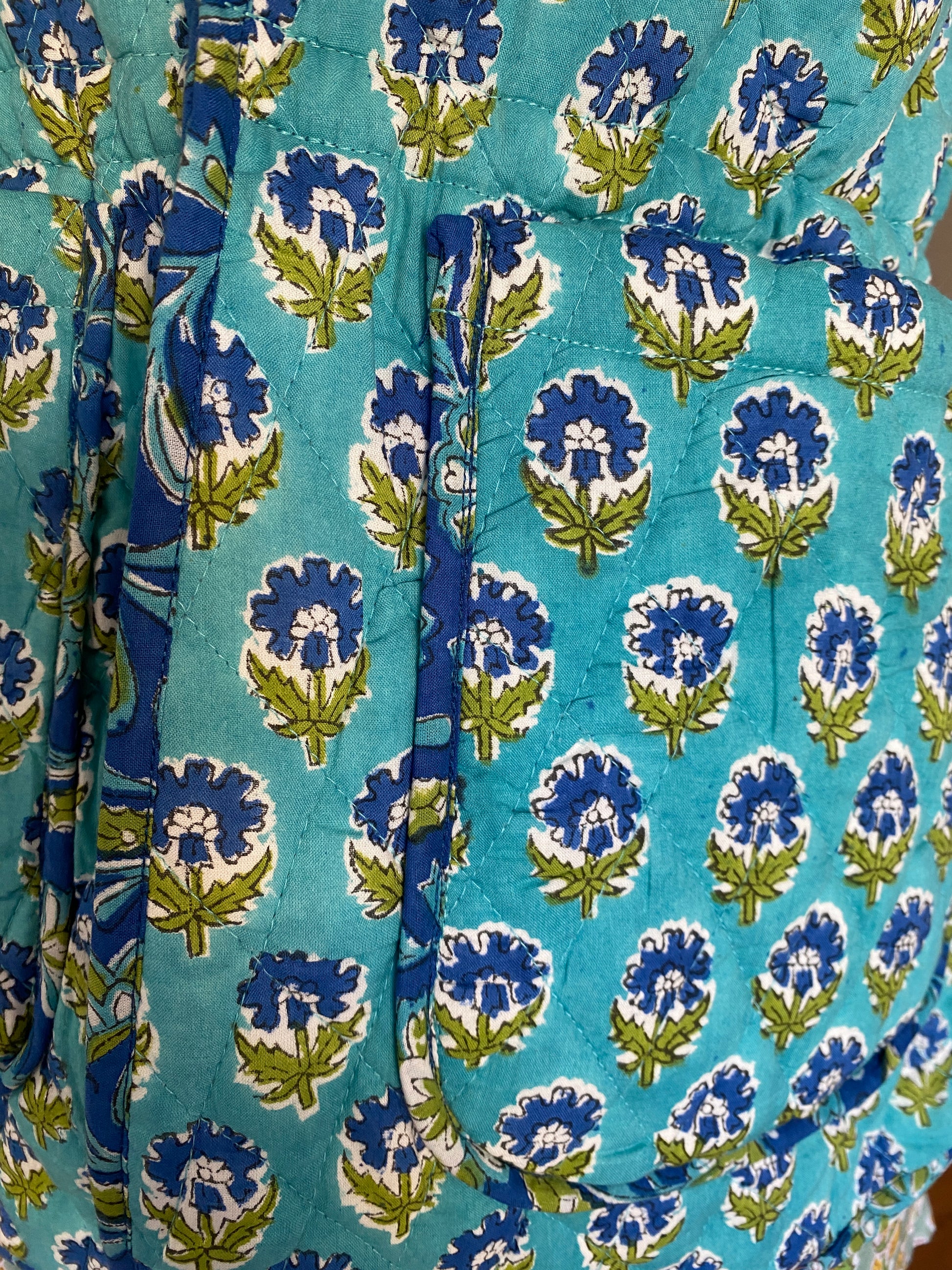 Turquoise Blue Bahaar Booti Reversible Quilted Gilet