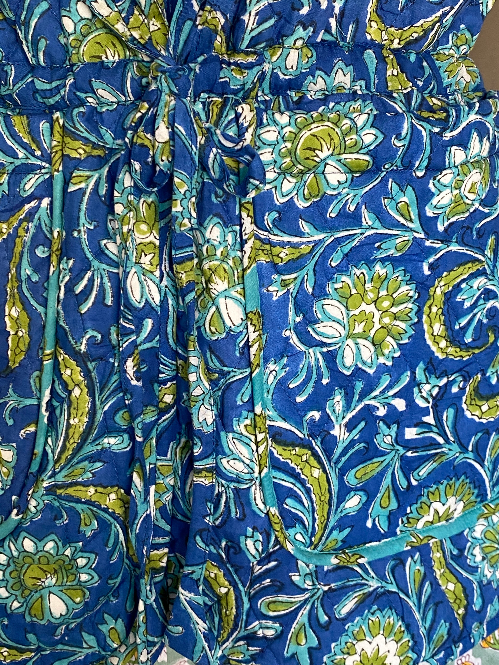 This Cottonist reversible gilet is made from pure cotton with lightly quilted effect and an all over stunning handblocked booti print on one side and a contrasting jaal print on the other for a touch of boho flair. It is designed in a regular fit , with a drawstring tie at the waist for a flattering silhouette. This sleeveless piece is complete with practical patch pockets on both sides.